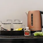 Las habitaciones del alojamiento, aptas para alérgicos con comodidades como climatizador. Las habitaciones incluyen un inodoro separado y ducha así como un hervidor eléctrico y una nevera.